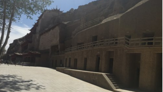 莫高窟开凿于敦煌城东南25公里的鸣沙山东麓的崖壁上,前临宕泉,东向祁连山支脉三危山。南北全长1680米,现存历代营建的洞窟共735个,分布于高15~30多米高的断崖上,上下分布1~4层不等。分为南、北两区,其中南区是礼佛活动的场所,各个朝代壁画和彩塑的洞窟492个,彩塑2400多身,壁画4.5万多平方米,唐宋时代木构窟檐五座,还有民国初重修的作为莫高窟标志的九层楼。