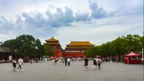 午门是故宫的正门。俗称五凤楼。东西北三面以12米高的城台相连,环抱一个方形广场。有1组建筑。正中有重楼,是9间面宽的大殿,重檐庑殿顶,在左右伸出两阙城墙上,建有联檐通脊的楼阁四座,明廊相连,两翼各有13间的殿屋向南伸出,四隅各有高大的角亭,辅翼着正殿。这组城上的建筑,是故宫宫殿群中第一高峰。午门是皇帝下诏书、下令出征的地方。它当中的正门平时只有皇帝才可以出入;皇帝大婚时皇后进一次;殿试考中状元、榜眼、探花的三人可以从此门走出一次。文武大臣进出东侧门,宗室王公出入西侧门。