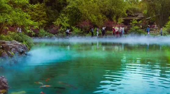 “植物王国、天然氧吧”。桃花源国家森林公园环抱整个桃花源景区,总面积2734.33公顷,森林覆盖率高达80.4%,拥有着纯静的生态环境,是人与自然和谐相融的典范,国家级户外运动训练基地。公园保存着目前重庆已发现保护完好的红椿天然原生种群。园内地文、人文、水文、生物资源极其丰富,涵盖了数百个自然和人文景观,大气质量、地面水质量、土壤质量均达到了国家一级标准,负离子含量高达8.52万个/cm3。春天,山花烂漫,芳林绚丽;夏天,浓荫如盖,云雾缭绕;秋天,红叶满山,层林尽染;冬天,银装素裹,分外妖娆,是整个酉阳的一片“肺叶”。