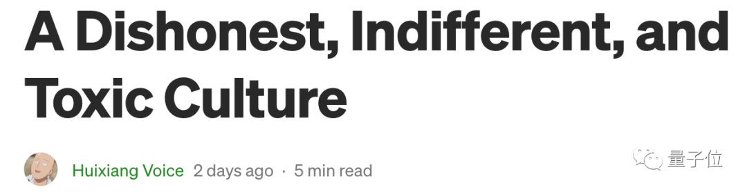 在为这位已故博士生发声的网站中,有人发表了一篇名为《不诚实、冷漠、有毒的文化》的文章。