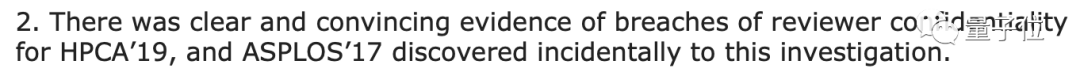 有明确且令人信服的证据表明,HPCA ‘ 19违反了审查员的保密规定,ASPLOS ‘ 17在这次调查中是偶然发现的这一情况。