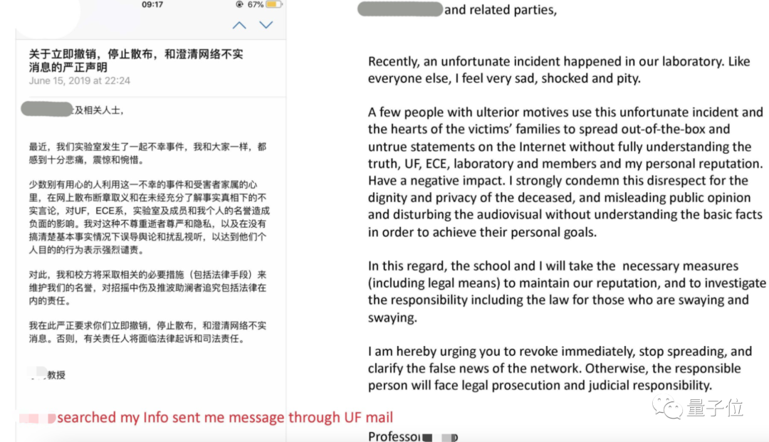 悲剧发生之后,这位发邮件至发布消息人士要求“立即撤销、停止散布,和澄清网络不实消息。否则,有关责任人将面临法律起诉和司法责任。”