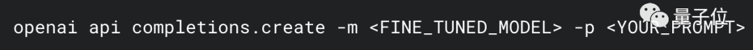 最后,使用微调模型时,只需将命令行中fine_tuned_model字段换成模型名称即可。