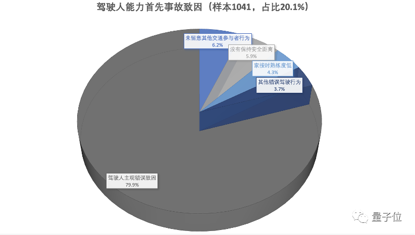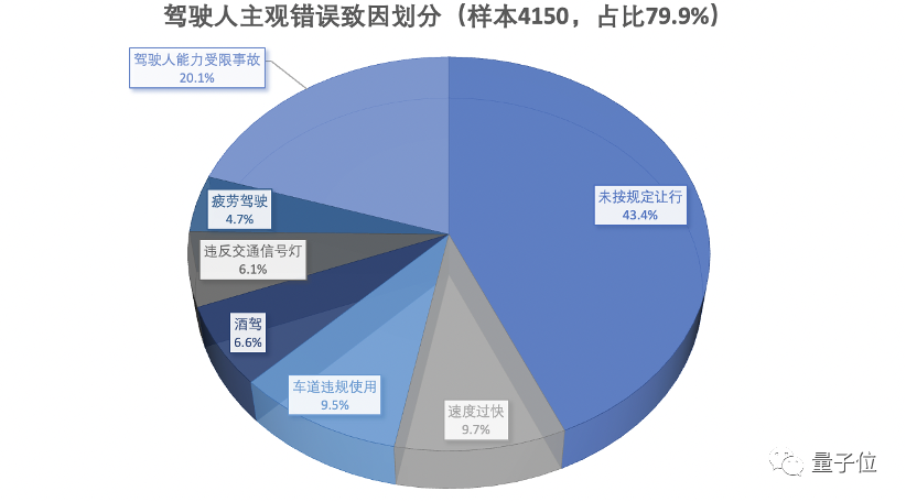 主观错误,比如抢行、超速、酒驾、疲劳驾驶等等,占样本总数的79.9%。