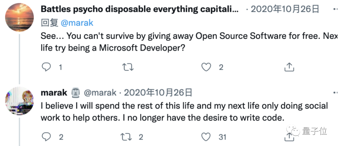 看到了吧,把开源软件免费送给别人并不能帮你生存下去。如果有下辈子,不如做个微软程序员试试?