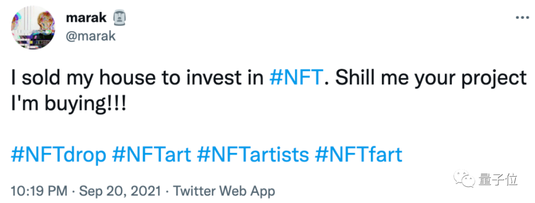 2021年他在推特上称,自己把房子都卖了,押宝NFT。
