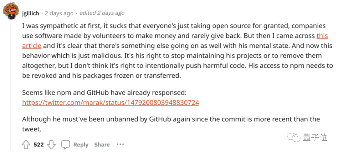 不管怎么说,在给全世界近两万个项目搞出乱码的大篓子之后,更多关于Marak这位程序员本人和开源社区的讨论,是停也停不下来了。