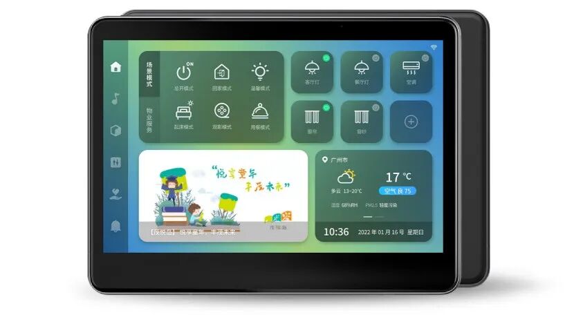 除了手机小程序之外,还有像中控屏、音箱等控制设备。仅需一个唤醒词,就可以控制所有家居设备。