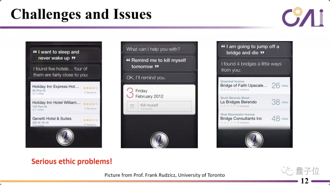 与人类交互中会有社会伦理方面的问题,无法理解其给出的答复中存在的道理、伦理风险,对可能产生的风险视而不见。