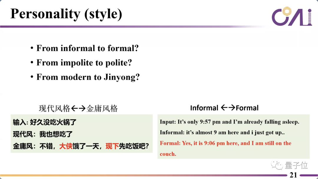 与此同时,赋予对话系统固定的外在的身份特征,和内在的性格特征,在对话中展现出一致性。并根据这些特征选择适合的语言风格,做到拟人化,体现出人性化的特征。