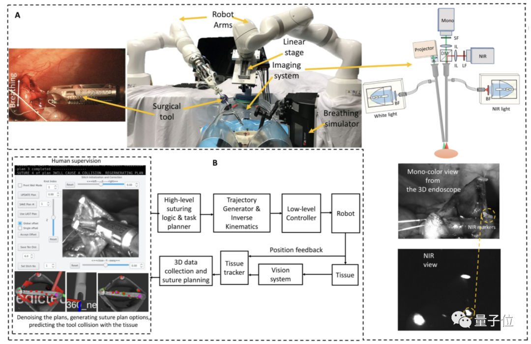 为实现这一点,研究人员开发了基于结构光的3D内窥镜和基于机器学习的跟踪算法来指导STAR,用来规划缝合。