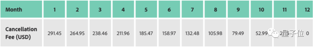 在Adobe官方常见问题的文档中,还具体标明了如果想在不同时期取订计划时所需标注的费用。
