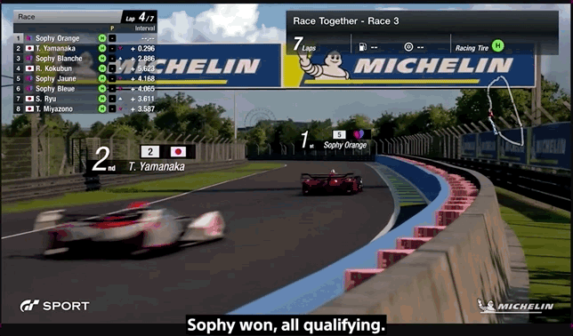 最终,GT Sophy在GT赛车比赛中胜过了2021年TGR GT杯冠军、2020年国家杯世界冠军和2021年亚军、2018年国家杯亚洲/大洋洲冠军等多位世界顶级赛车手。