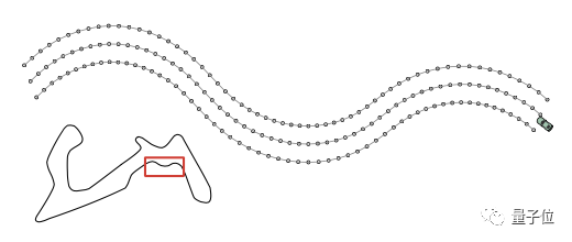 在一张完整的地图中,研究者以6秒为单位,将智能体所跑的赛道量化为一段一段的“静态地图段”,并将每一段赛道的左右边缘和中心线编码为60个等距的三维点: