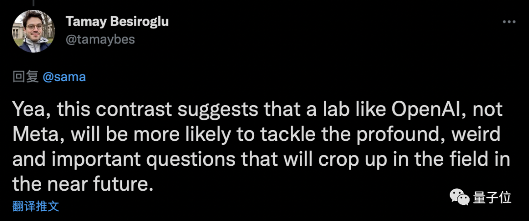 下面这句语气略有些嘲讽,似乎是在暗示OpenAI因开放的态度取得了更多成果。