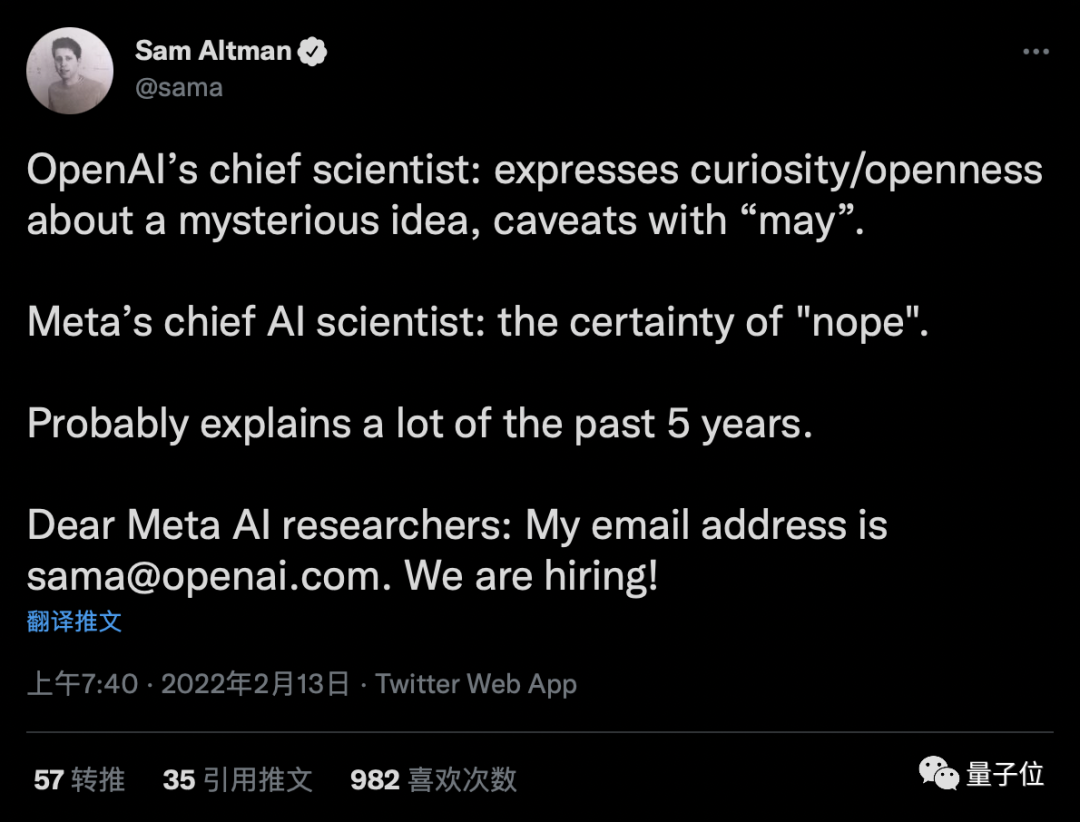 尊敬的Meta AI研究人员:我的电子邮件地址是 sama@openai.com。我们正在招聘!