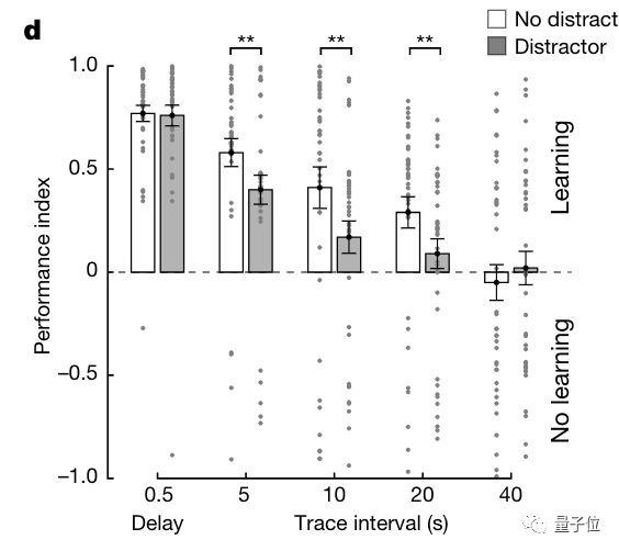 这就说明了图案刺激可以在果蝇大脑里留下短暂的记忆,并且干扰因素可以让果蝇“分心”,也就是存在注意力机制。
