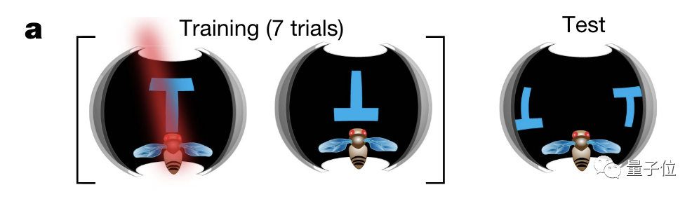 当果蝇视野中有正的“T”形图案时,也会同时被烫一下,反之不会。这样训练7次之后,在视野中同时出现正“T”和倒“T”时,果蝇就会“飞向”倒“T”。