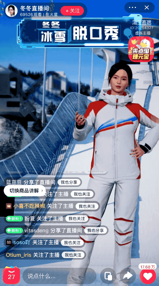 例如在直播间这种高度需要互动的场景中,冬冬就不是“自顾自的”的表演。