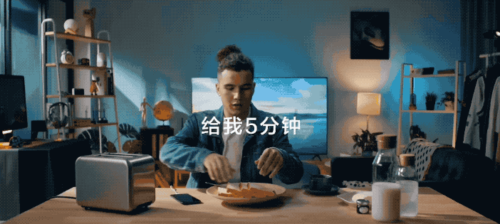 realme更是在宣传片中用“冲杯咖啡、烤片面包”的时间,来营造这种快速“回血”的能力: