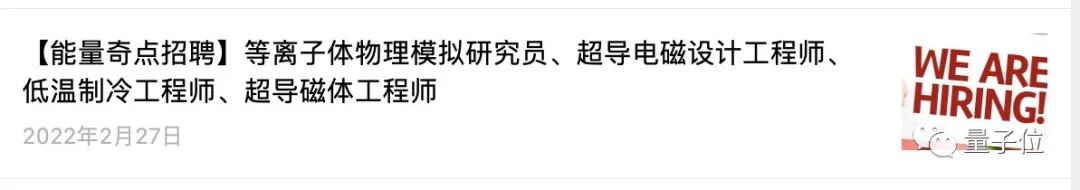 几天前,能量奇点还放出首波招聘:包括等离子体物理模拟研究员、超导电磁设计工程师、低温制冷工程师、超导磁体工程师等岗位,学历要求为博士或硕士毕业工作五年以上。