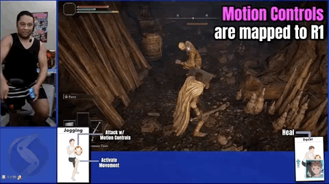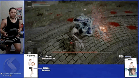 Super Louis 64可以说是个十足的宫崎英高粉丝了,因为除了《艾尔登法环》,他还把《恶魔之魂》、《只狼》等都改造成了体感游戏。