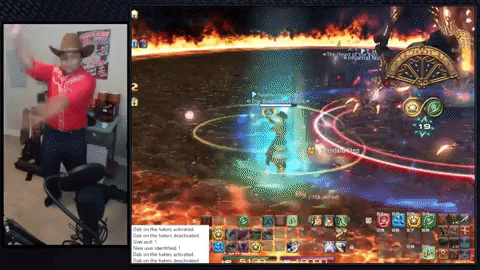 甚至还将舞者等职业玩成了“线下真人跳舞”,用Kinect给自己做实时动作捕捉,跳什么样的动作就加什么样的buff,最终实现了真·舞者打副本: