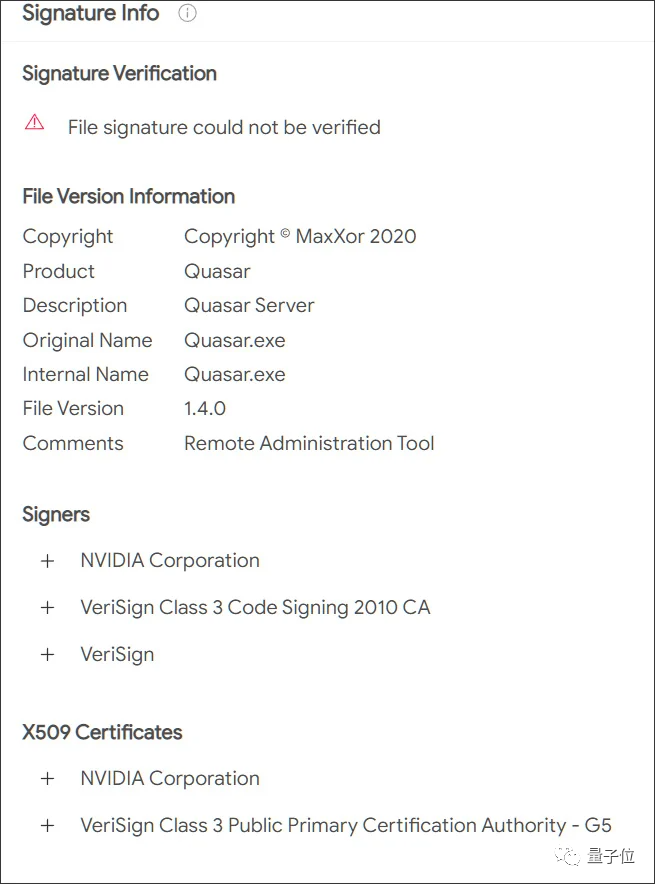 在线查毒平台VirusTotal显示,黑客已经开始尝试用证书给远程访问木马签名了。安全人员也注意到了这一点。