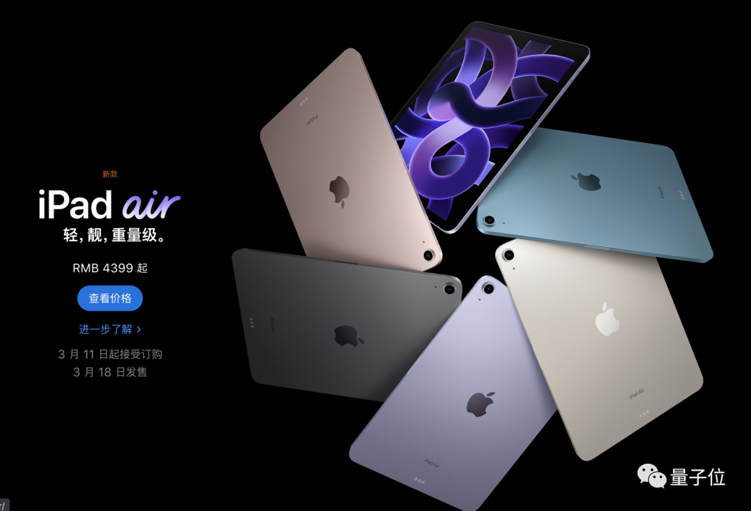 最后来到iPad Air 5,则是在会前被曝要新加入一种配色(以配合邀请函上「五彩斑斓的黑」的Logo)。