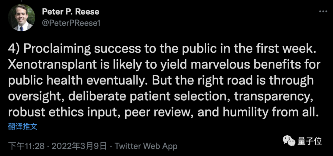 最后,来自宾夕法尼亚大学的肾脏移植病学家Peter P. Reese也提醒道,异种移植会给公共健康带来巨大好处,但前提是有正确、强有力的道德监督,并谨慎地挑选合适移植的患者人选。