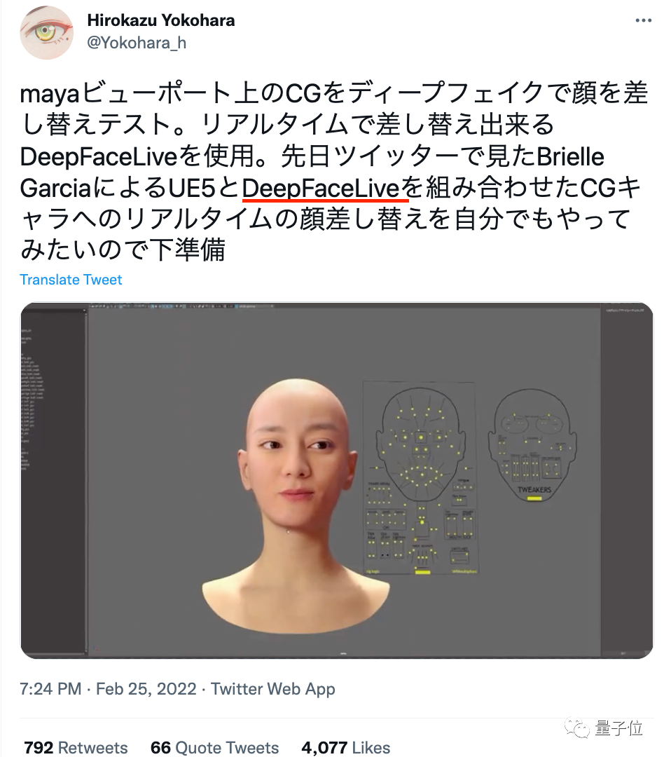 最近,拿Maya加一个换脸软件就能做到的实时面部捕捉在日推火了: