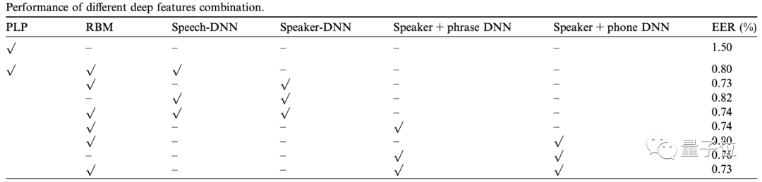 与传统的短时谱特征(例如MFCC、PLP)不同的是,钱彦旻团队采用了各种深度模型隐含层的输出作为深度特征,进行文本相关“说话人”验证。