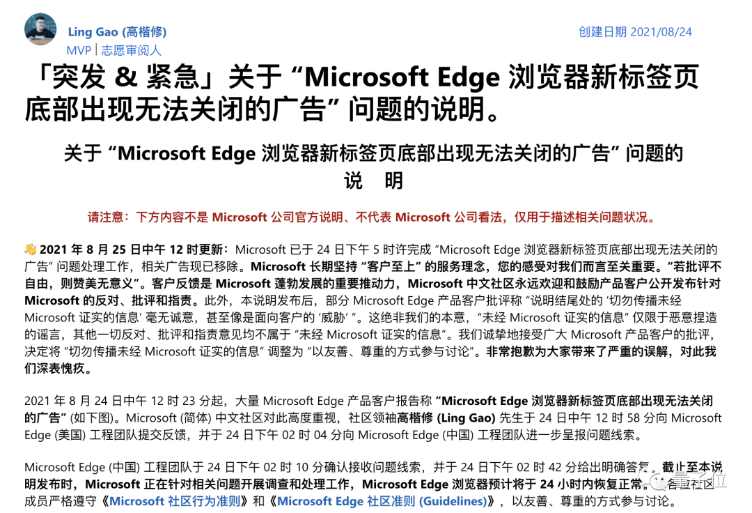 甚至此前,微软曾因大量用户反馈“浏览器无法关闭广告”陷入不小的风波。