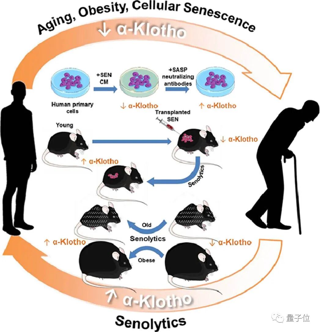 小鼠实验中共有3个模型。分别是:自然衰老组、饮食诱导肥胖组、移植衰老细胞组。