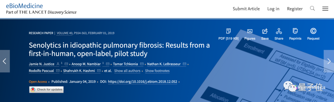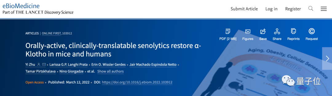 此次的最新进展由梅奥医学中心James L. Kirkland团队带来,研究成果已在柳叶刀子刊eBioMedicine上发表。