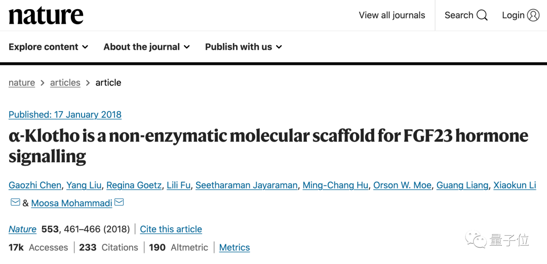 这是一种可协助传递延缓衰老激素信号的蛋白,相关研究曾在Nature上发表。