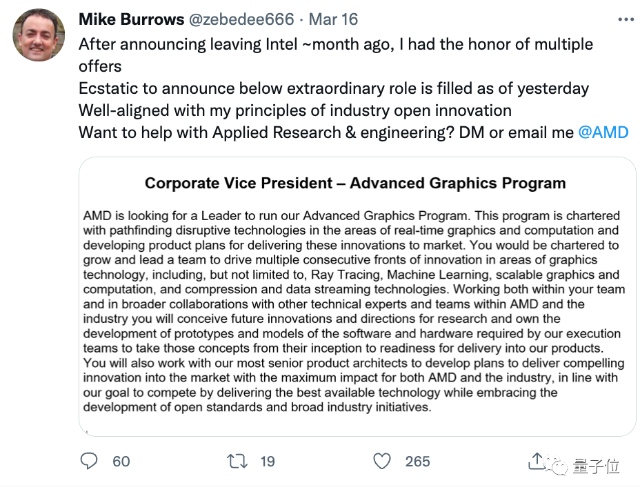 参考链接:[1]https://www.theregister.com/2022/03/16/amd_hires_intel_gpu/[2]https://www.linkedin.com/in/mikeburrows/[3]https://www.gamedeveloper.com/disciplines/sponsored-feature-an-interview-with-intel-s-mike-burrows