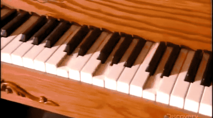 小马哥表示,100多年前就有人实现了让钢琴自己演奏的功能,当时的方法是通过一张滚动的纸,由上面的打孔来控制钢琴的按键: