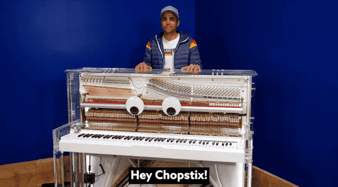 瞧,这台经过改良的钢琴Chopstix (筷子),跟他对话的画风是这样的: