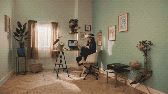 戴上VR眼镜,在屋里划拉出一个空间,就可以给同事们“当面”讲解PPT了。