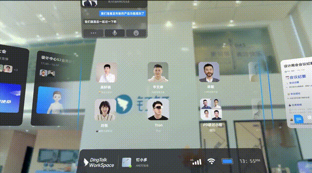 通过Rokid Air AR眼镜,钉钉WorkSpace把消息、会议、文档等任务窗口,全部在数字化办公空间里铺开。