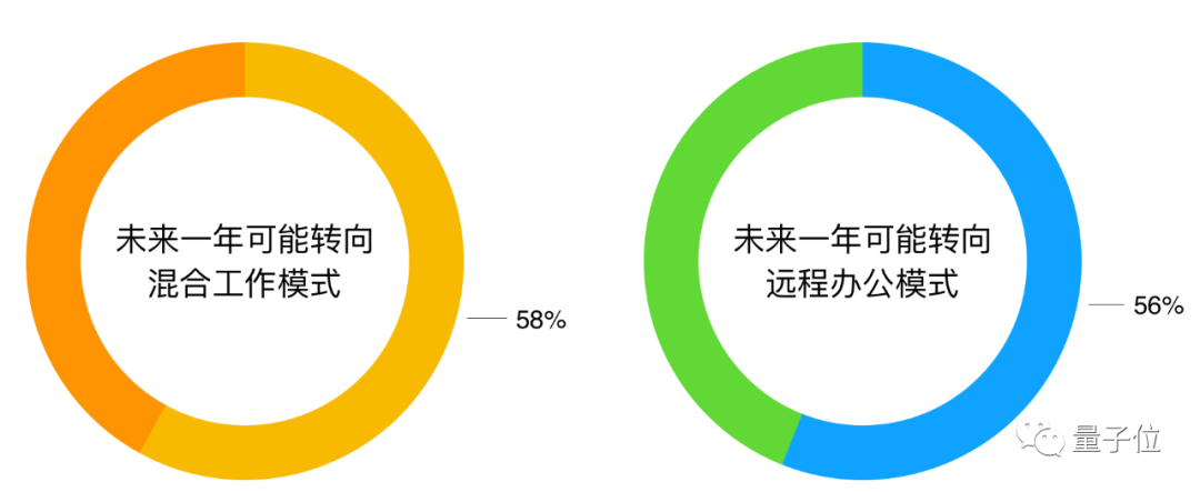 他们之中,有58%的人考虑在未来一年转向混合工作模式,56%的人打算选择远程办公。