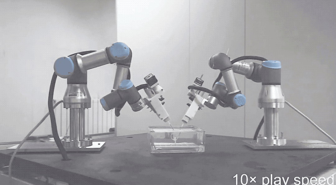 在具体实践中,实验人员用两台六轴机器人在血管支架上进行血管内皮细胞和心肌细胞的打印。