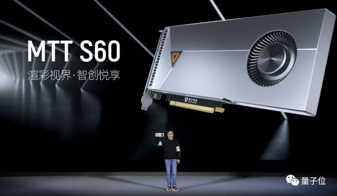 除了苏堤GPU之外,张建中拿出的这张显卡——全新第一代桌面级显卡MTT S60,成为了活动中的另一大焦点。