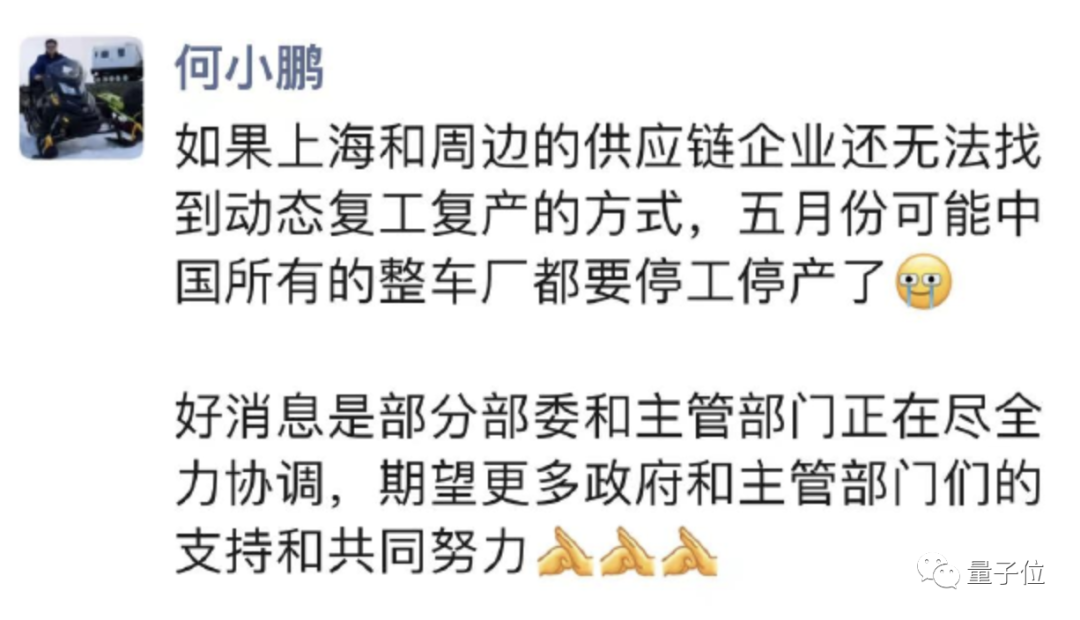 何小鹏:若上海及周边供应链企业无法复产,中国各整车厂五月将停工停产