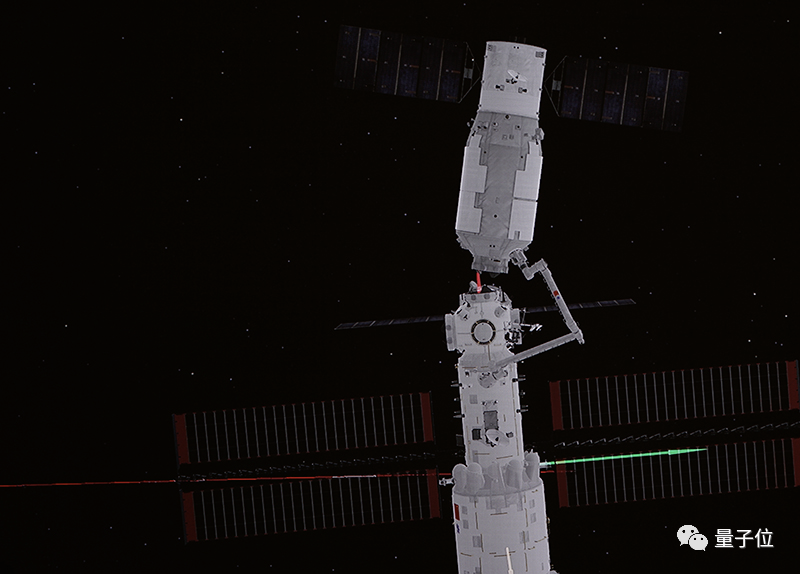 经过约47分钟的跨系统协同,空间站机械臂成功将天舟二号货运飞船进行平面转位,然后重新对接。