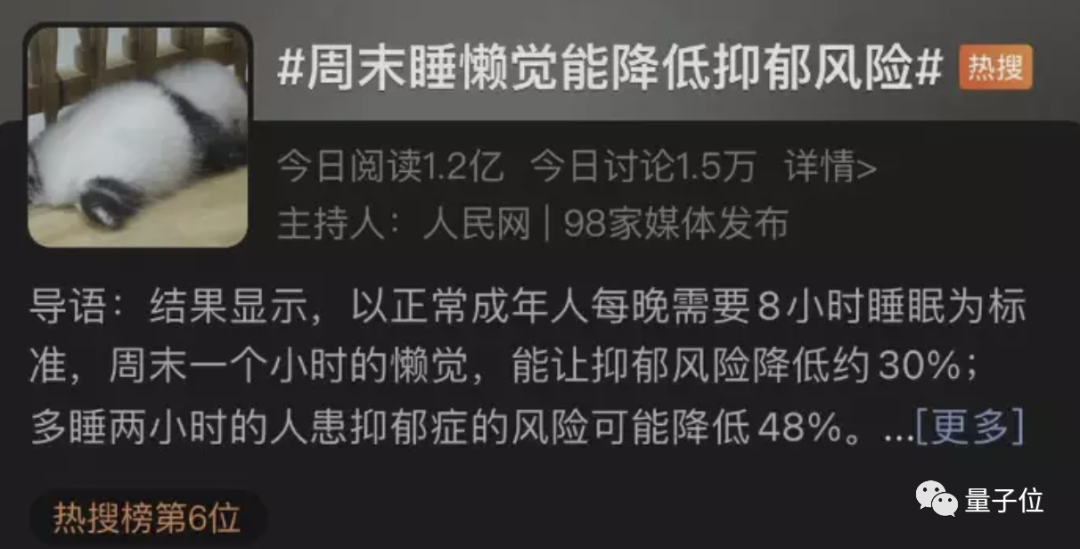 周末1个小时的懒觉,能让抑郁风险降低约30%。