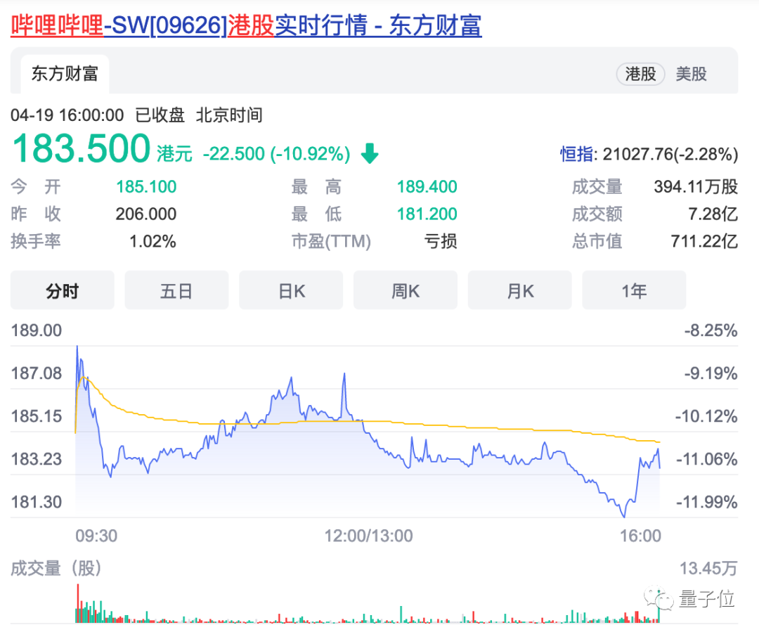 B站回应直播部门大裁员,港股下跌10.92%