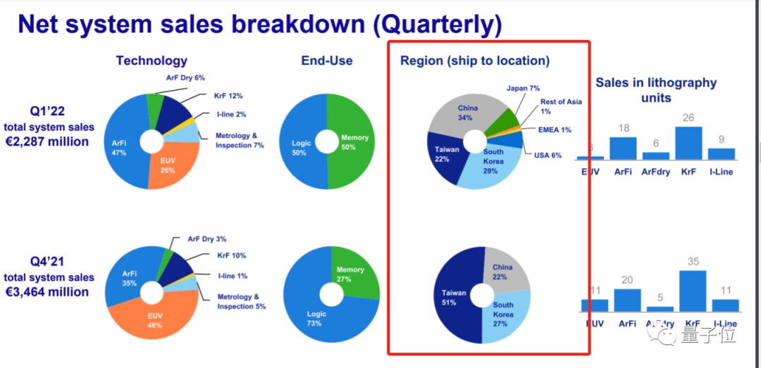 此外,财报显示,中国大陆占据了本季度设备销售额的34%,排名第一,而这一数字在2021年Q4季度则为22%,增幅明显。