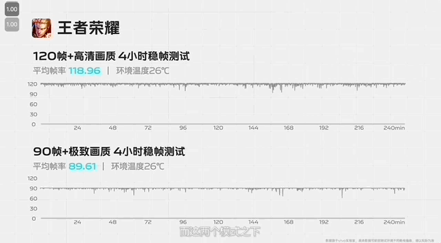 在现场它给出了在「90帧+极致画质」、「120帧+高清画质」 稳帧运行四个小时的结果。